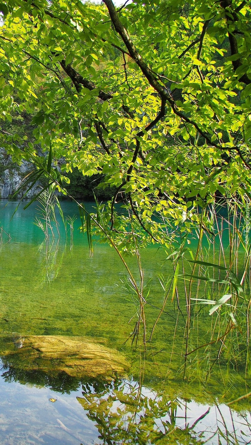 Edytor tapety: Zwisające gałęzie nad rzeką