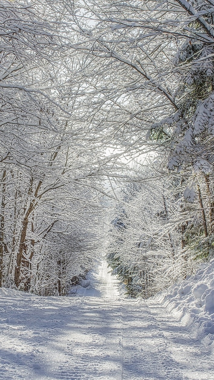 Edytor tapety: Ośnieżona droga leśna
