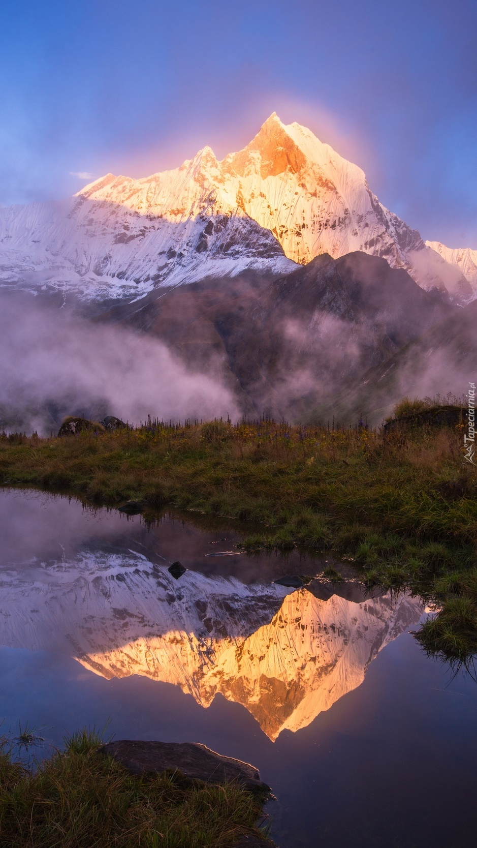 Edytor tapety: Ośnieżony wierzchołek góry w słońcu