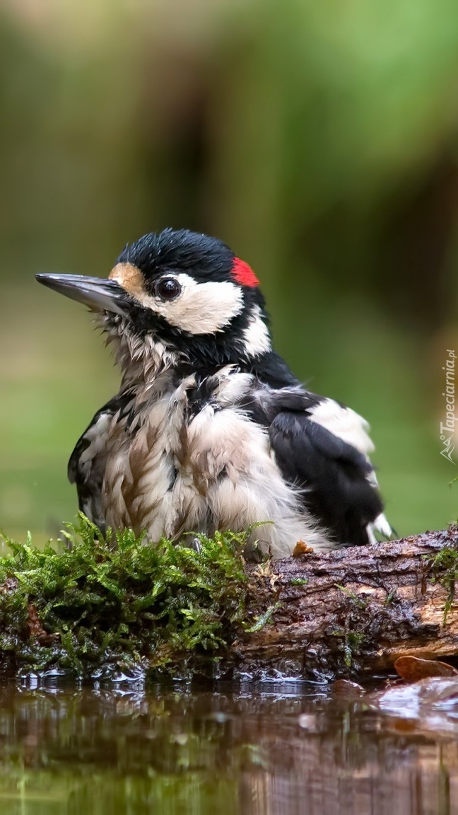 Edytor tapety: Dzięcioł na omszałym pniaku