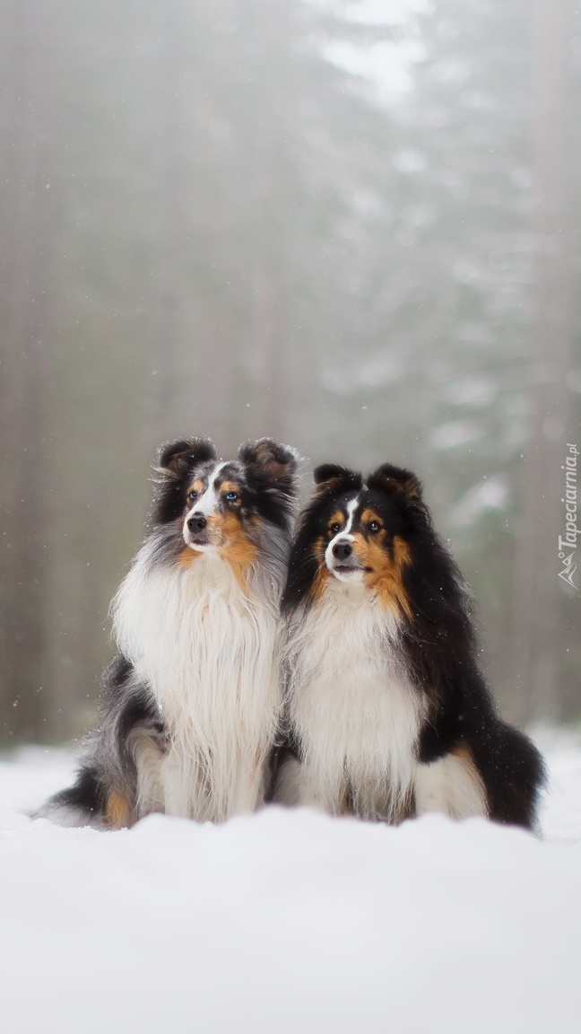Edytor tapety: Owczarki szetlandzkie na śniegu