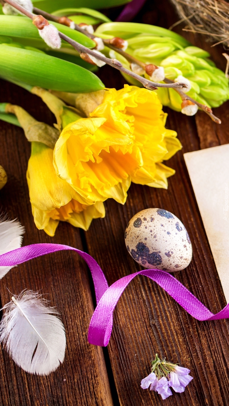 Edytor tapety: Wielkanocna kompozycja z żonkilami