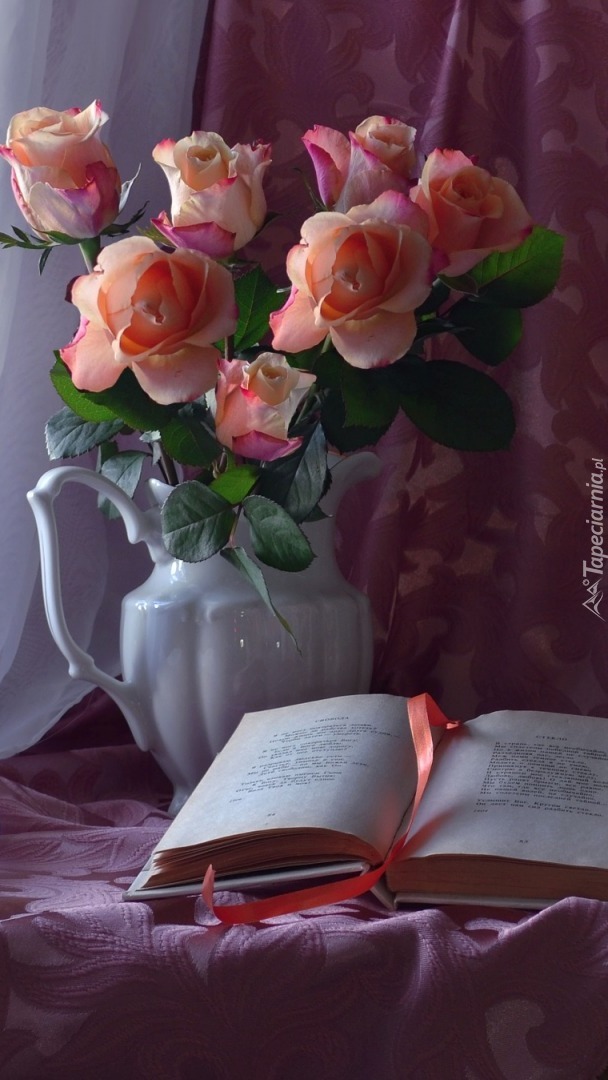 Edytor tapety: Róże w dzbanku i książka