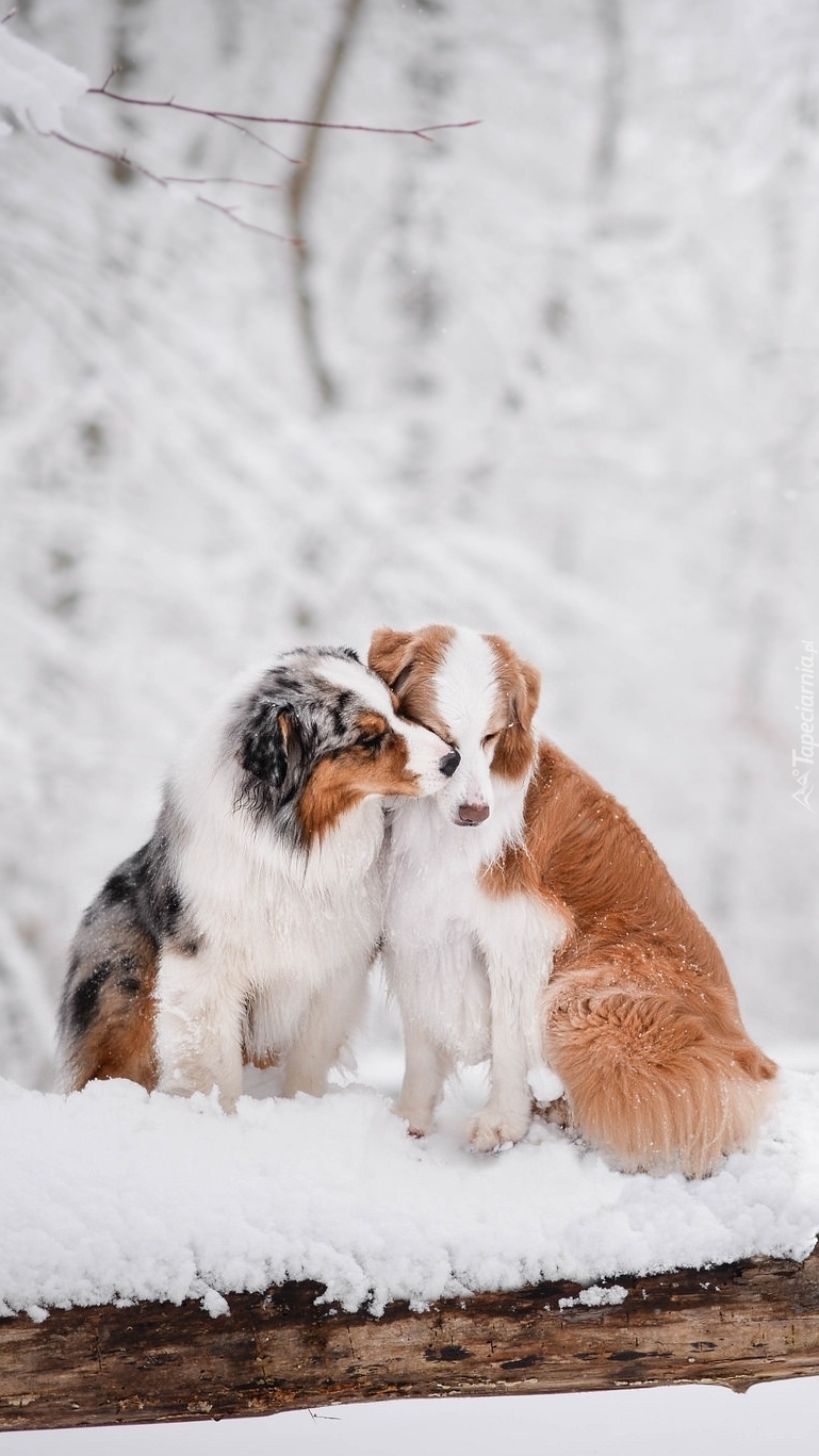 Edytor tapety: Owczarki australijskie na śniegu