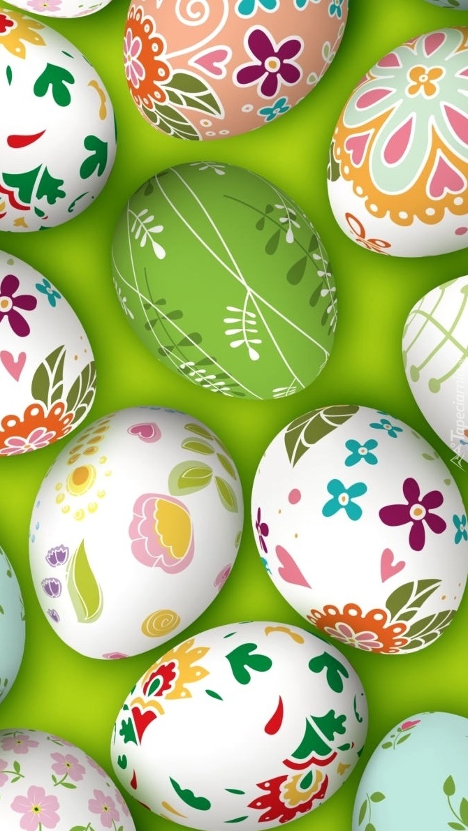 Edytor tapety: Malowane jaja na zielonym tle