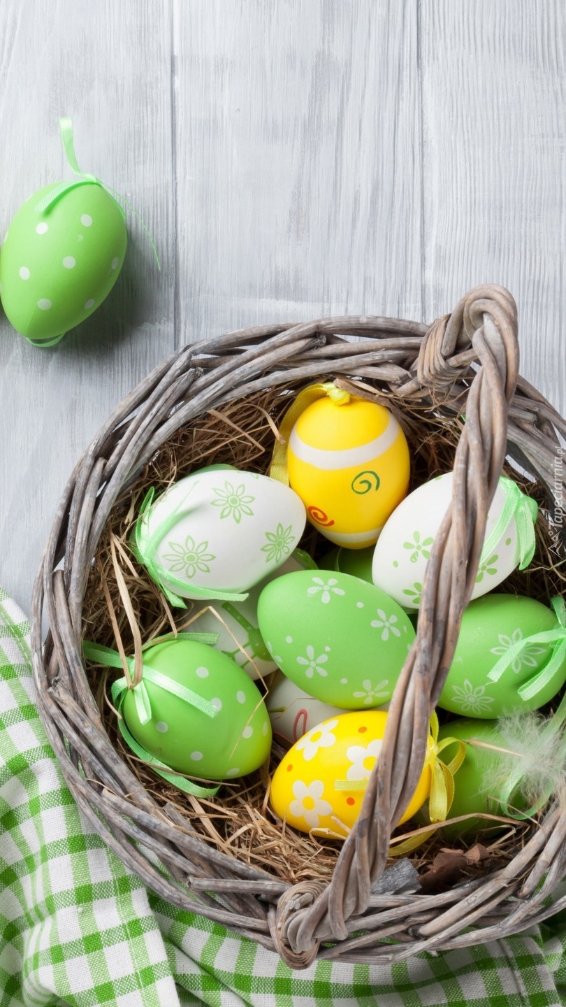 Edytor tapety: Pisanki wielkanocne w koszyku