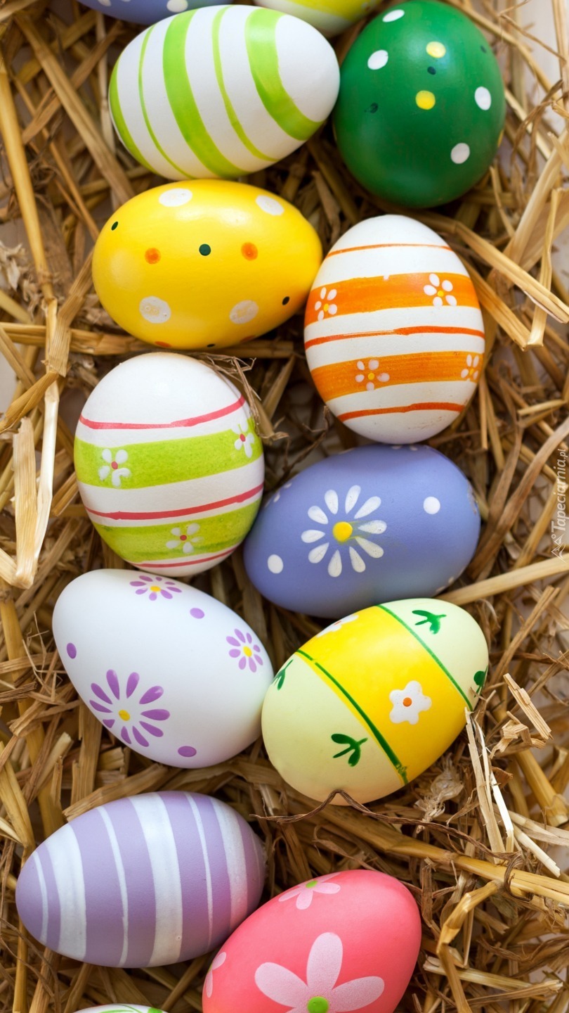 Edytor tapety: Barwne pisanki w sianie