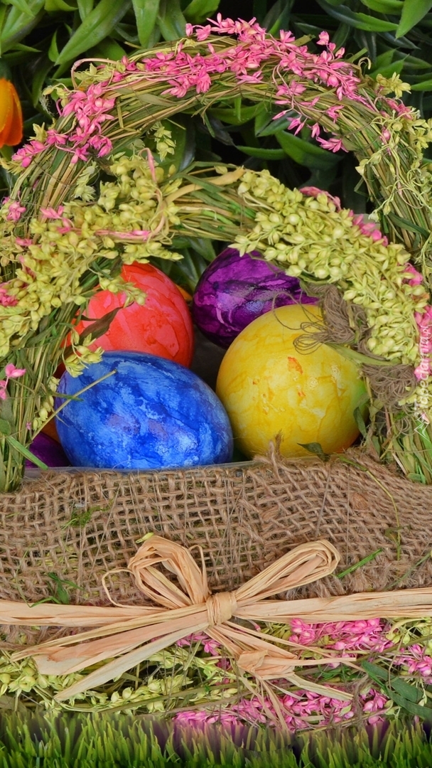 Edytor tapety: Koszyk z malowanymi jajkami