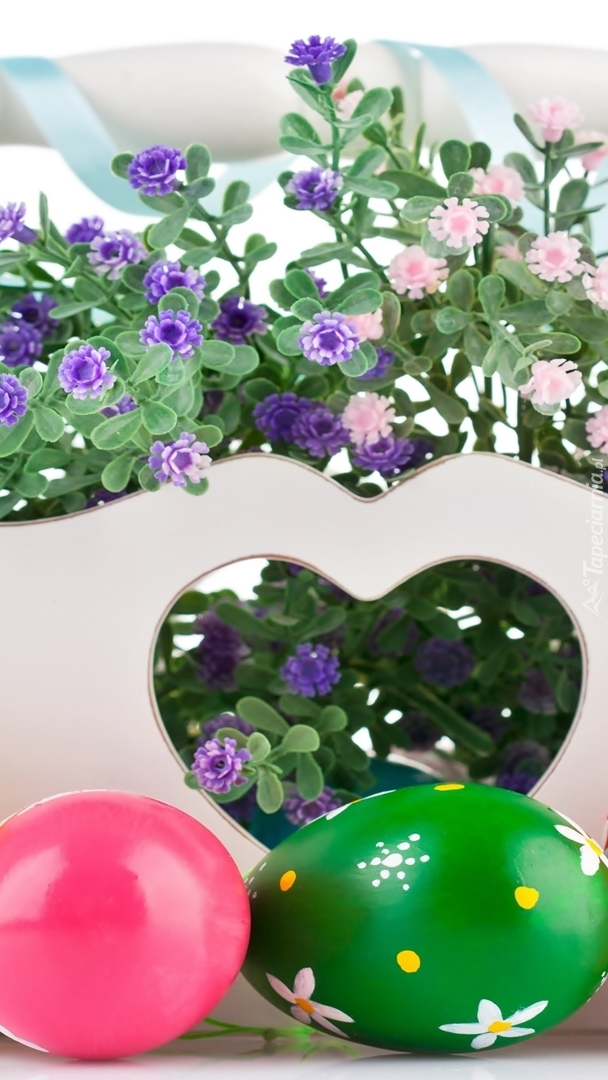 Edytor tapety: Kolorowe pisanki i kwiaty
