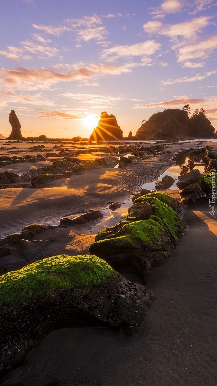 Edytor tapety: Omszałe kamienie w promieniach słońca