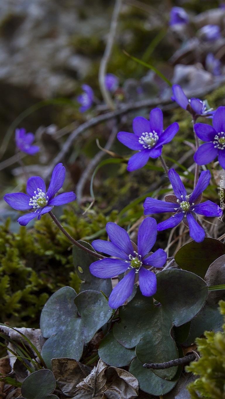 Edytor tapety: Kępka przylaszczek na mchu