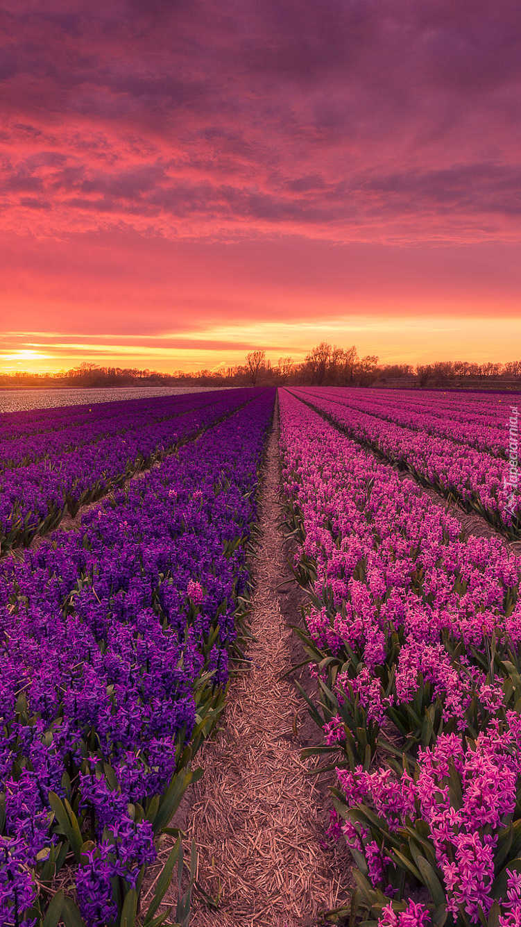 Edytor tapety: Zachód słońca nad polem hiacyntów