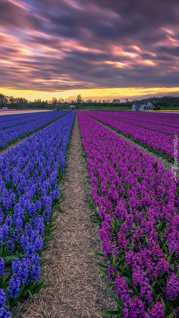 Edytor tapety: Pole hiacyntów i ciemne chmury