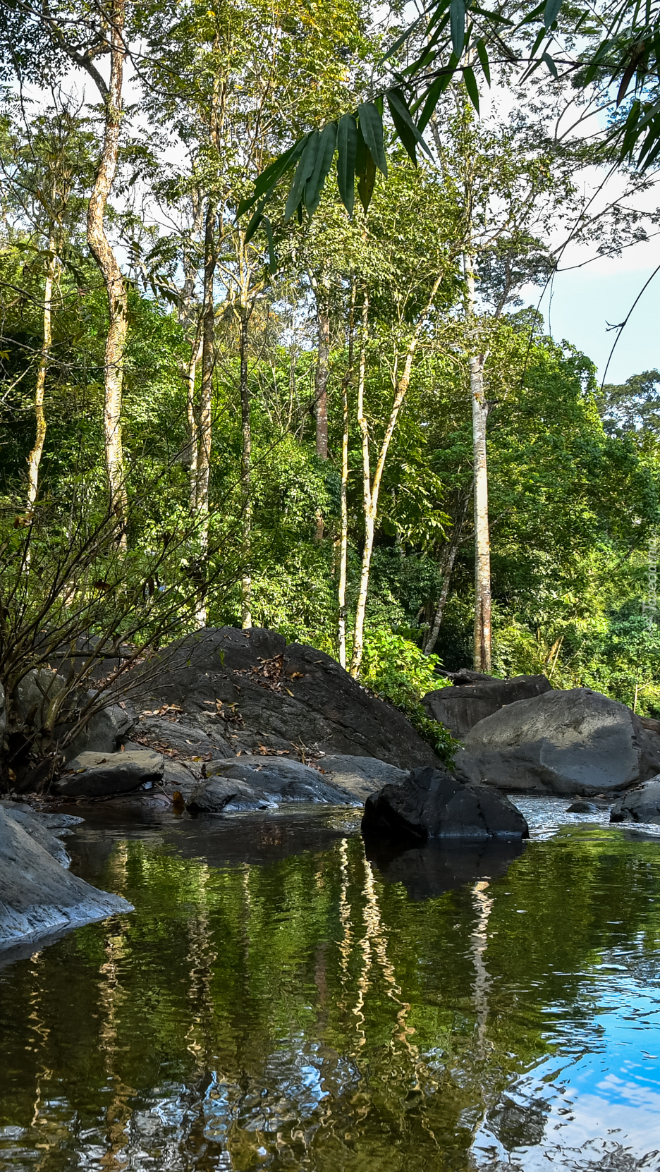 Edytor tapety: Kamienie na brzegu rzeki w lesie