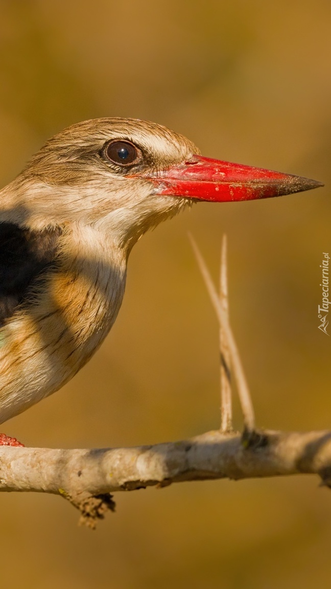 Edytor tapety: Ptak z czerwonym dziobem na gałązce