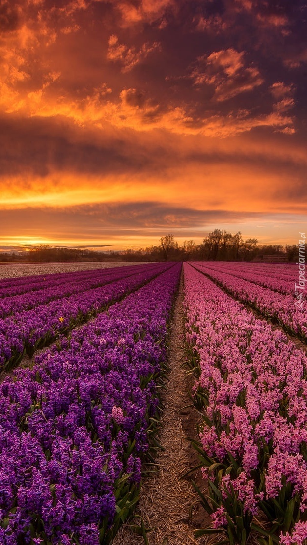 Edytor tapety: Zachód słońca nad polem z hiacyntami