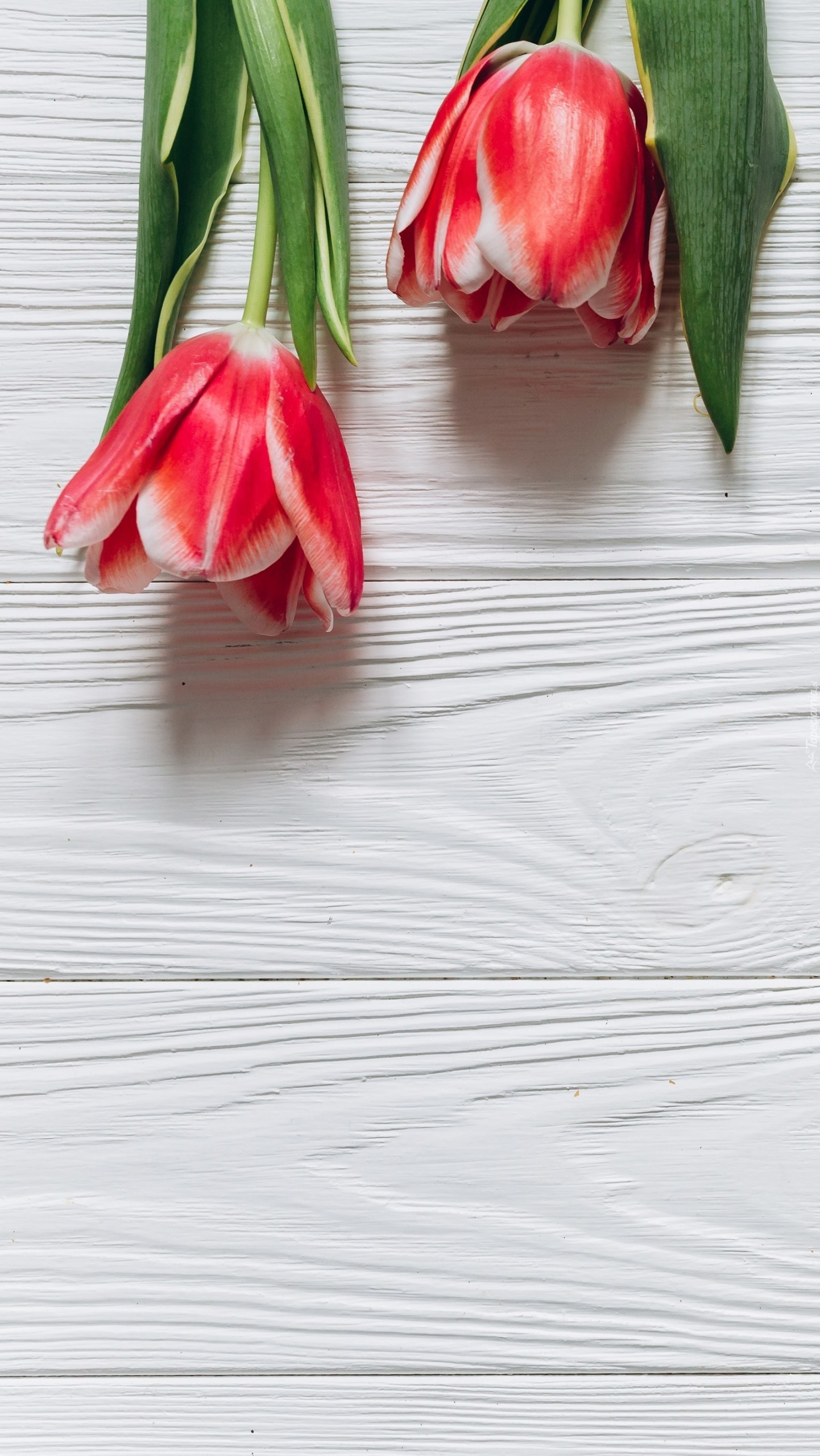 Edytor tapety: Dwa czerwono-białe tulipany