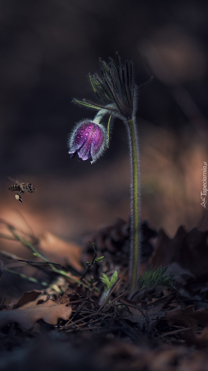 Edytor tapety: Sasanka w towarzystwie pszczoły