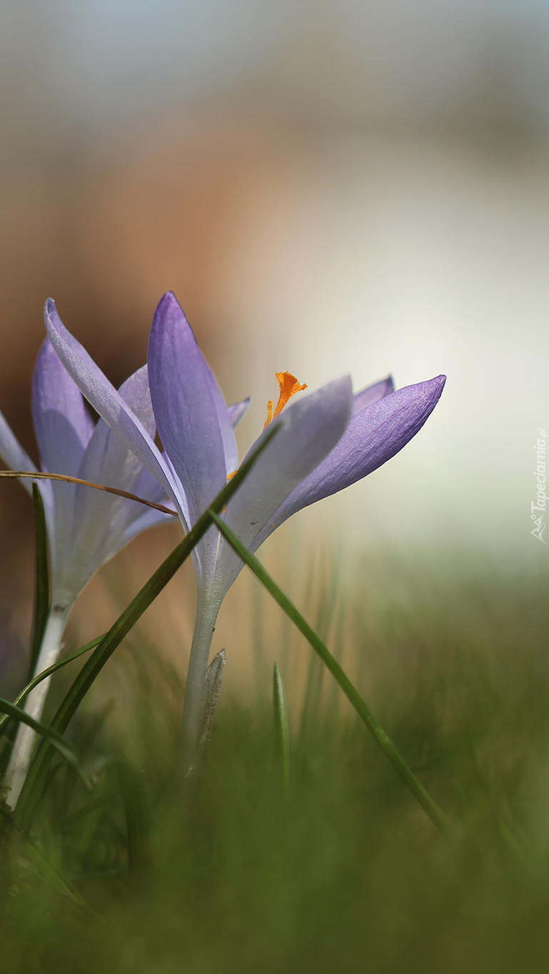 Edytor tapety: Biało-liliowe krokusy