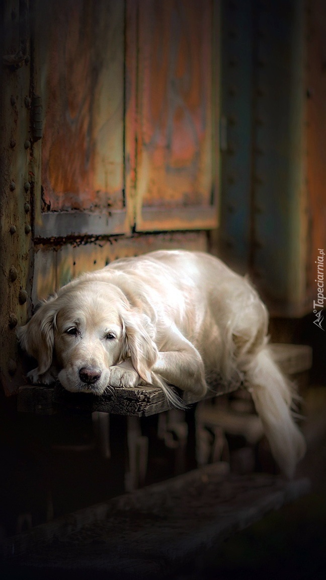 Edytor tapety: Golden retriever na ławce