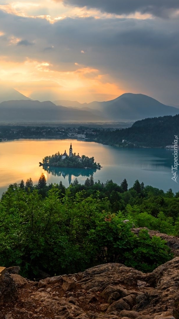 Edytor tapety: Wyspa Blejski Otok na jeziorze
