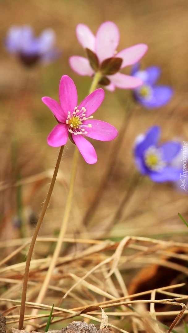 Edytor tapety: Kolorowe przylaszczki w trawie