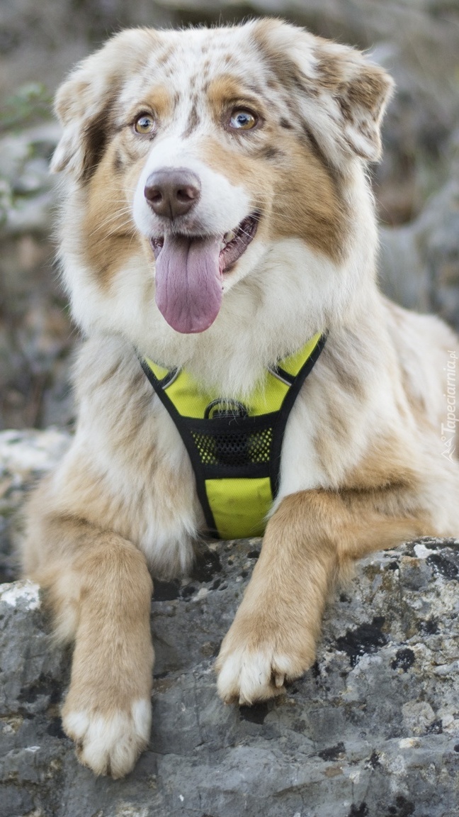 Edytor tapety: Owczarek australijski na kamieniach