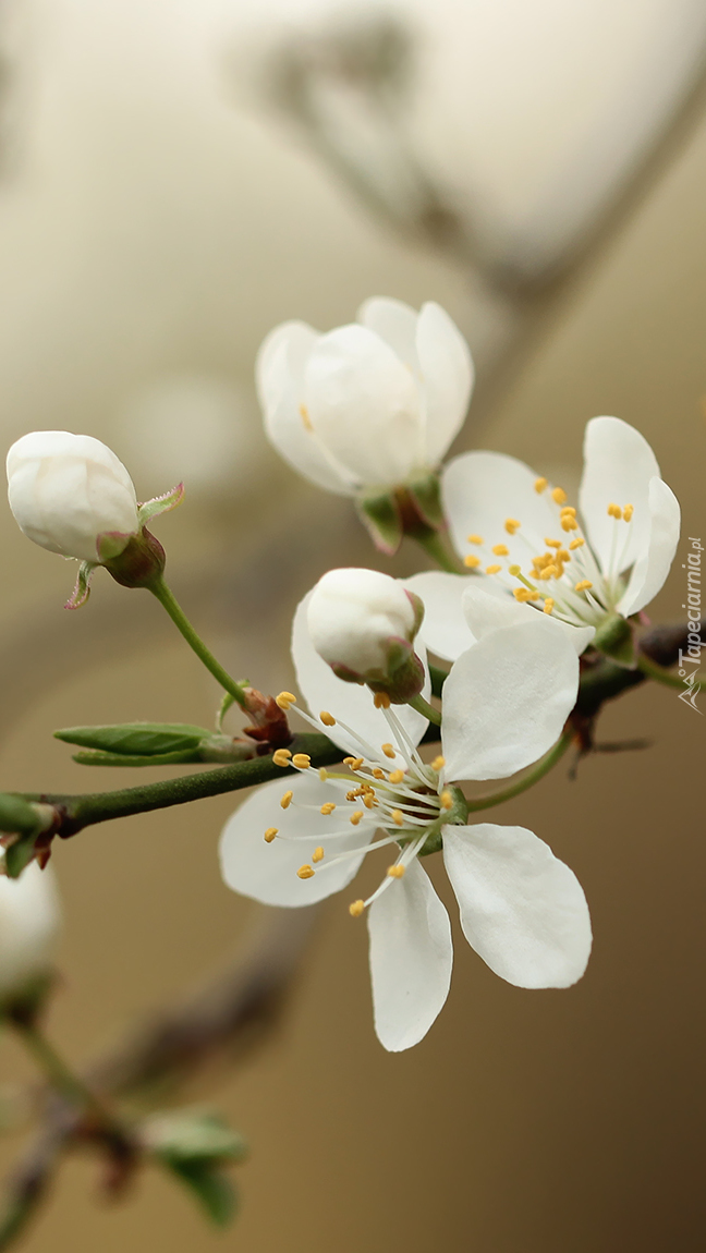 Edytor tapety: Białe kwiaty drzewa owocowego