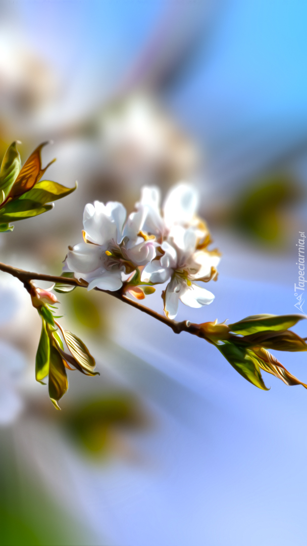 Edytor tapety: Gałązka wiśni w rozmyciu