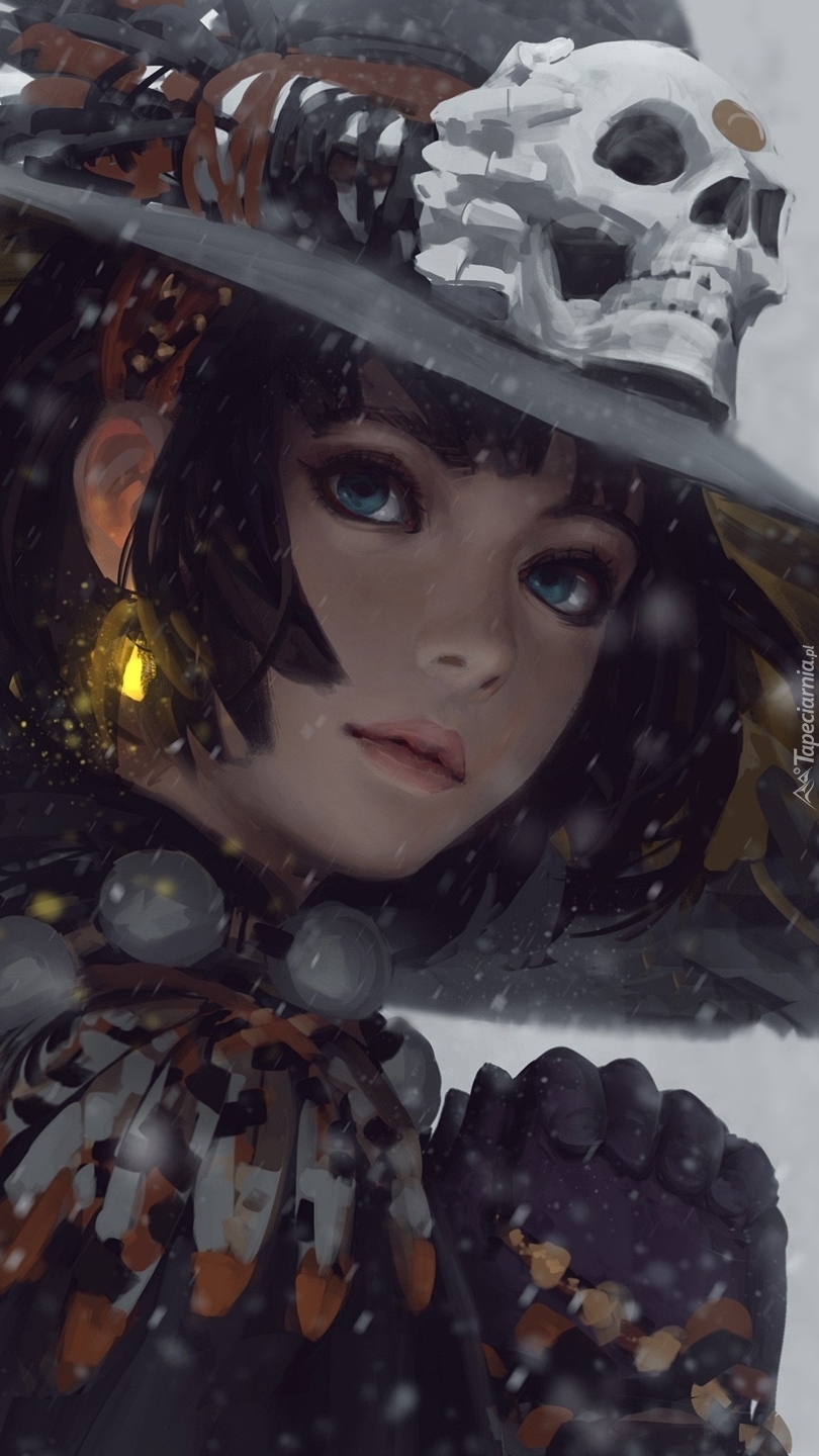 Edytor tapety: Dziewczyna w kapeluszu z czaszką