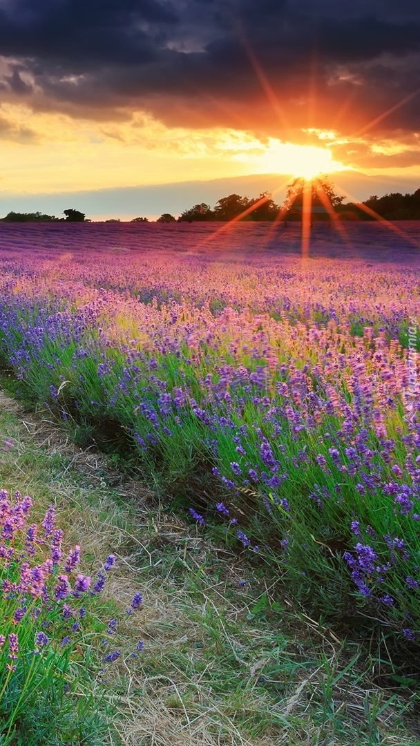 Edytor tapety: Lawendowe pole w promieniach słońca