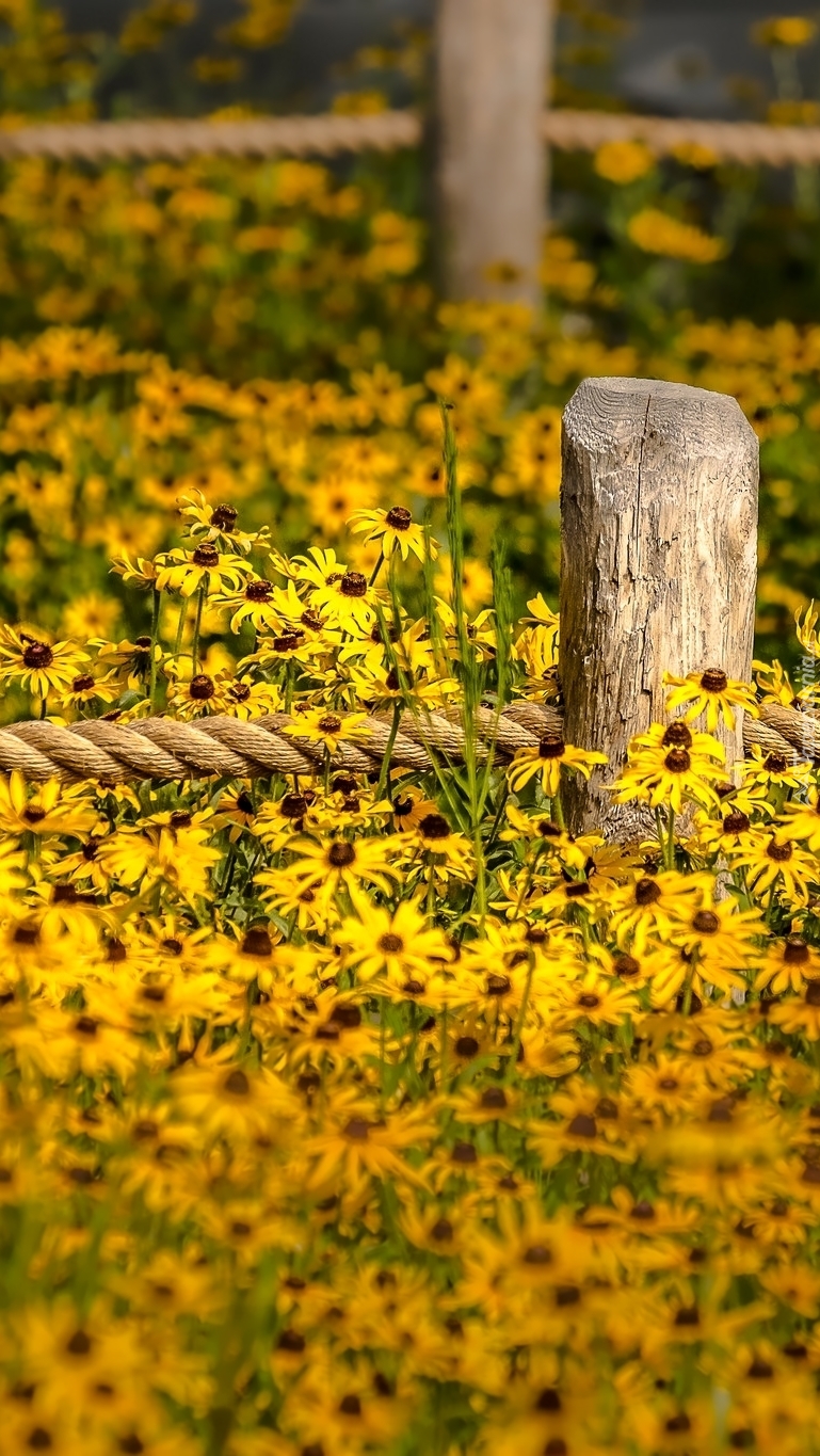 Edytor tapety: Ogrodzenie w kwiatach rudbekii