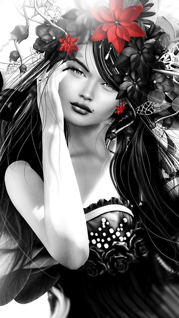 Edytor tapety: Kwiaty we włosach dziewczyny