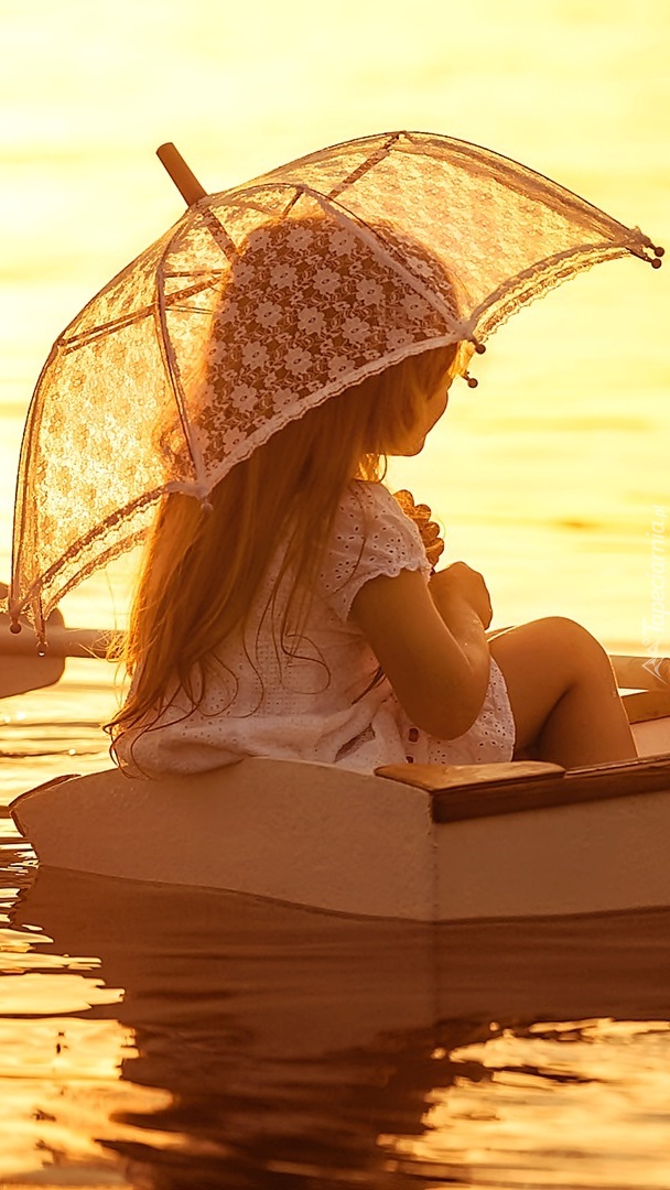 Edytor tapety: Dziewczynka z parasolem na łódce