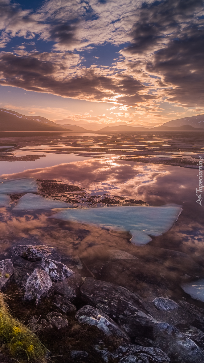 Edytor tapety: Kry na jeziorze o zachodzie słońca
