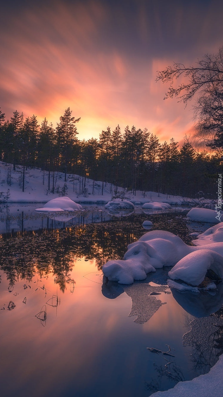 Edytor tapety: Zachodzące słońce nad jeziorem