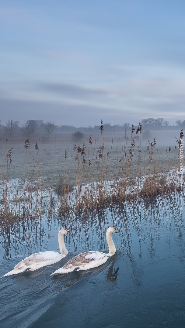 Edytor tapety: Dwa łabędzie na rzece