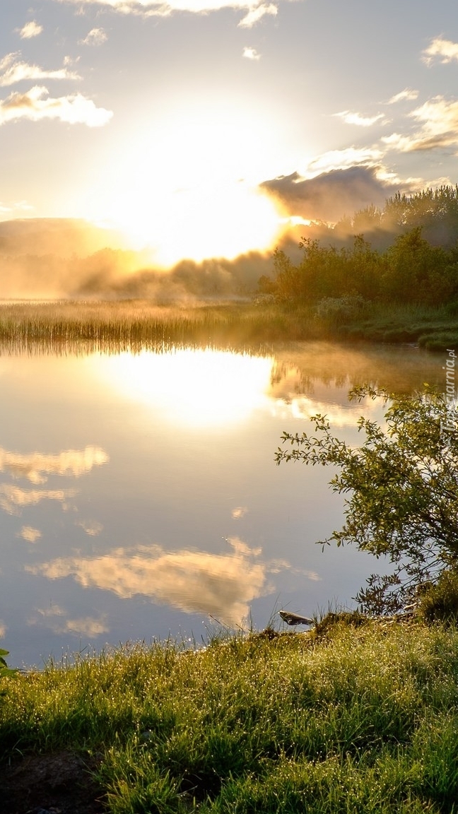 Edytor tapety: Wschód słońca nad jeziorem