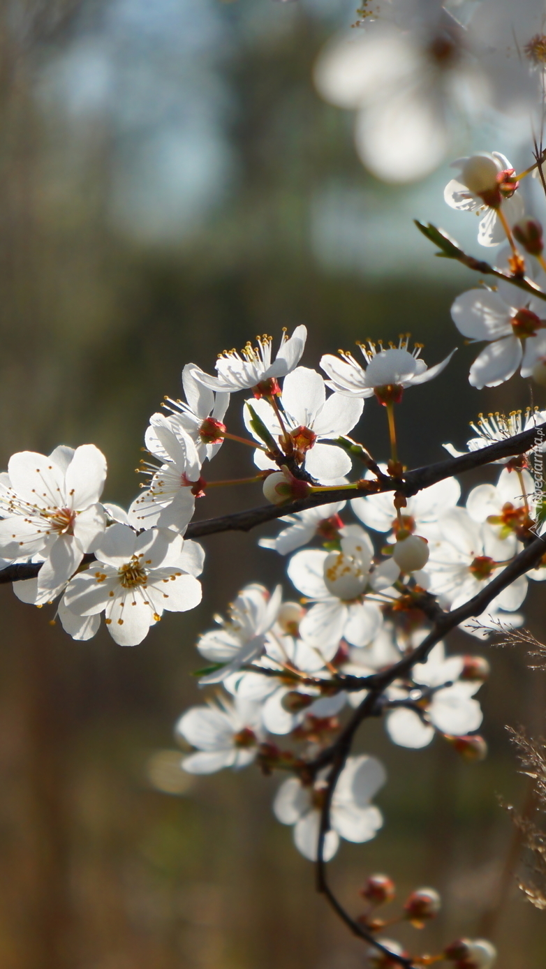 Edytor tapety: Gałązka z białymi kwiatami