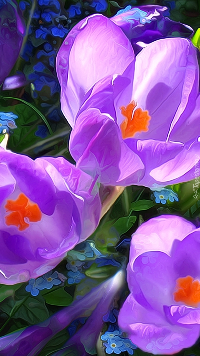Edytor tapety: Fioletowe krokusy i niezapominajki