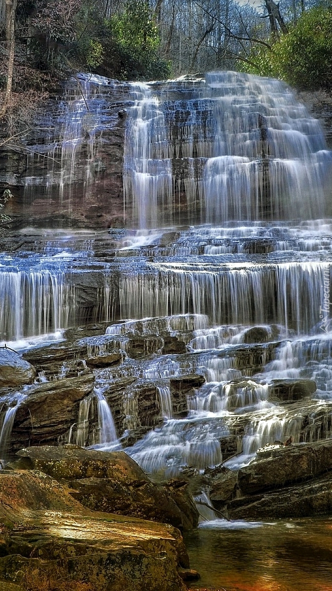 Edytor tapety: Wodospad na skałach
