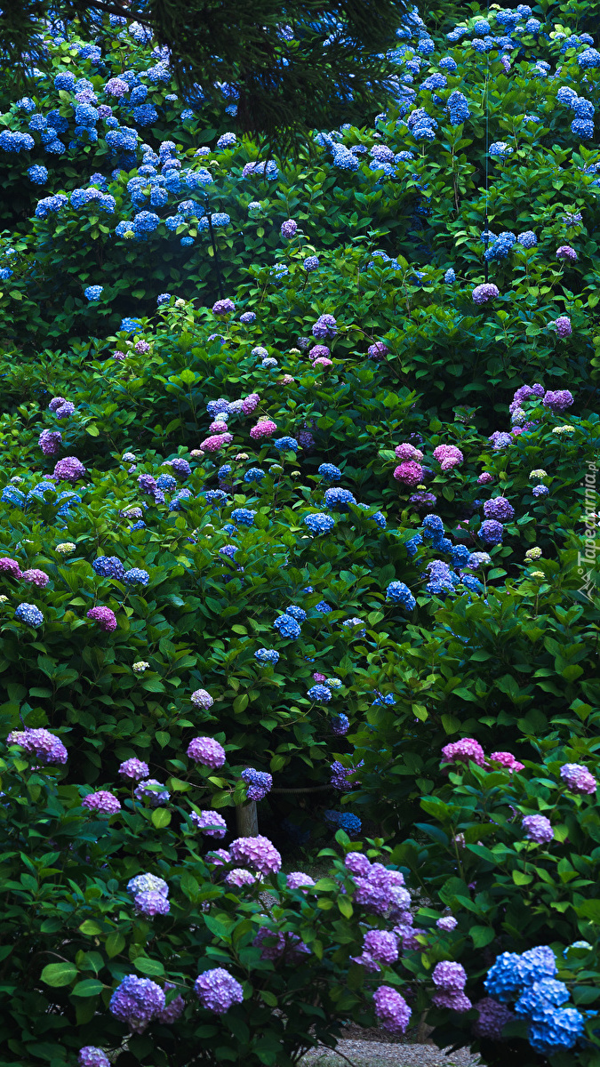 Edytor tapety: Kolorowe kwiaty hortensji w parku
