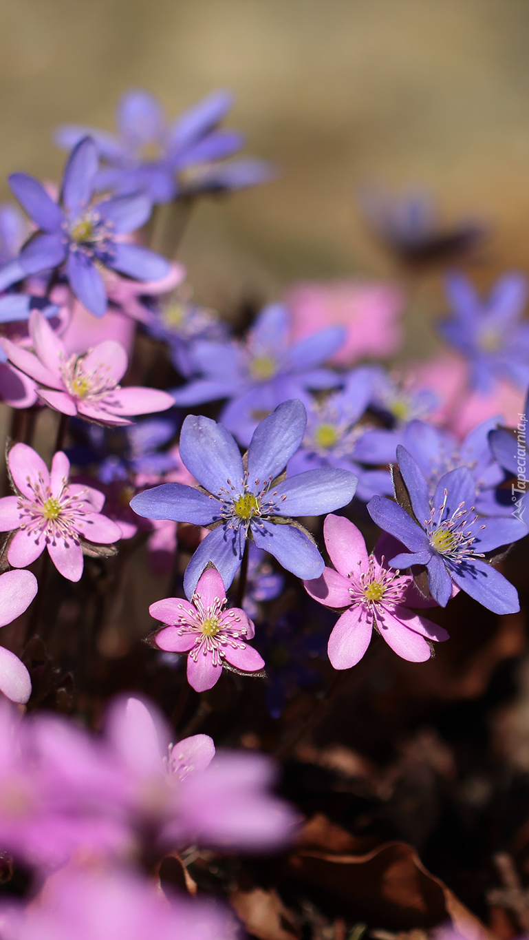 Edytor tapety: Przylaszczki różowe i niebieskie