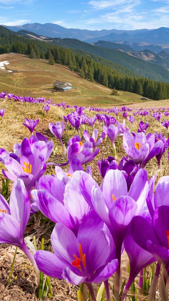 Edytor tapety: Krokusy na górskiej łące