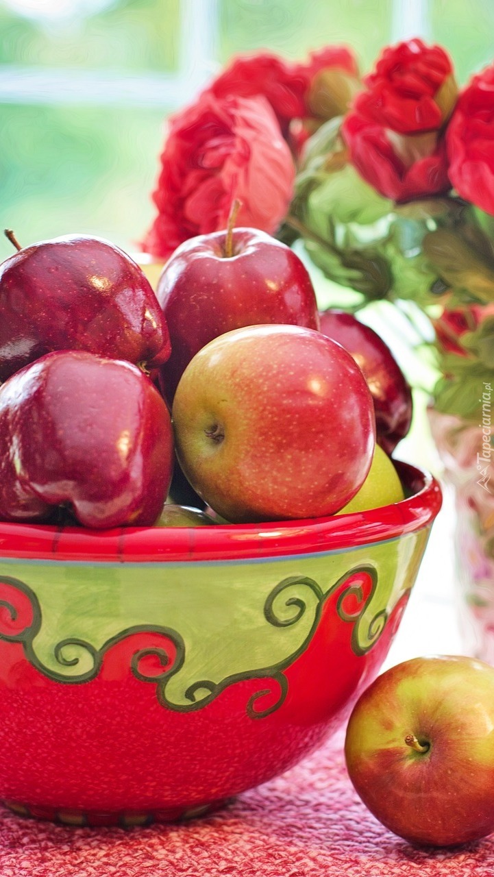 Edytor tapety: Jabłka w kolorowej misce