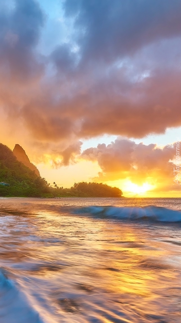 Edytor tapety: Wschód słońca nad morskimi falami