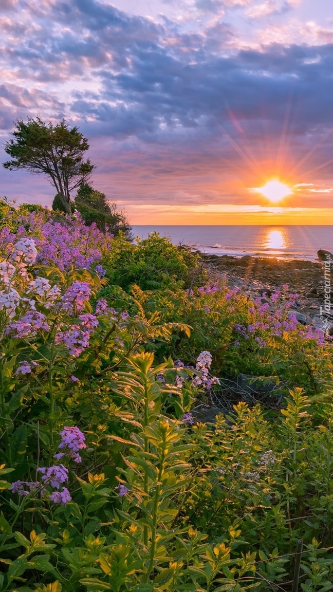 Edytor tapety: Wschodzące słońce odbija się w morzu