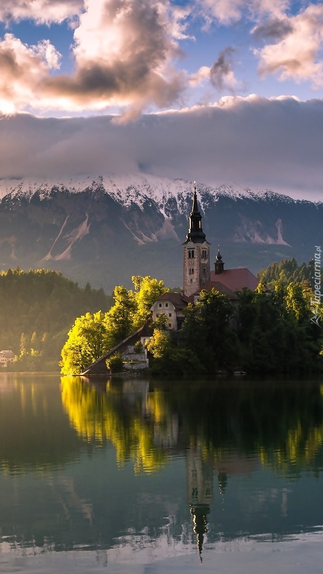Edytor tapety: Kościół odbijający się w rzece