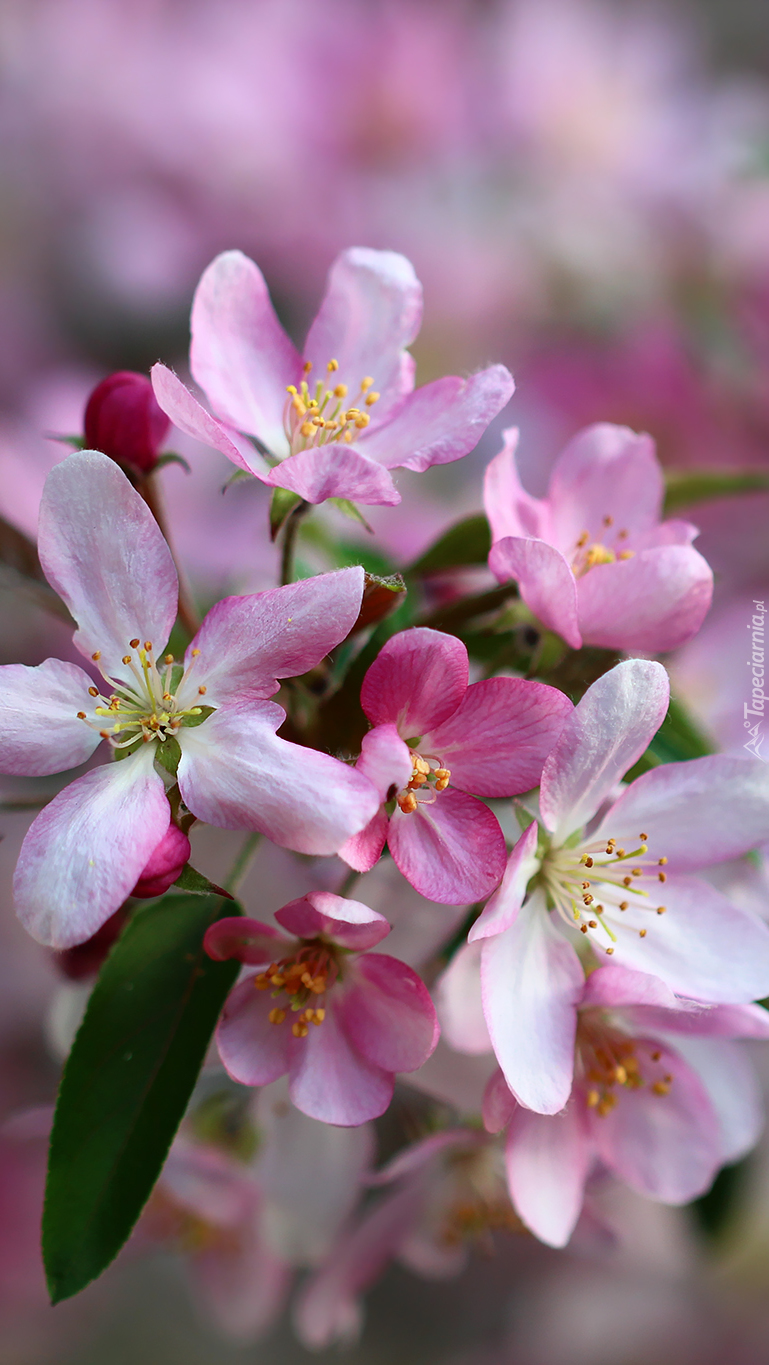 Edytor tapety: Gałązka z biało-różowymi kwiatami
