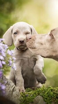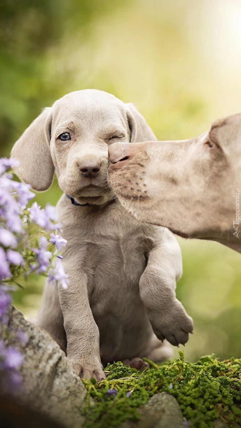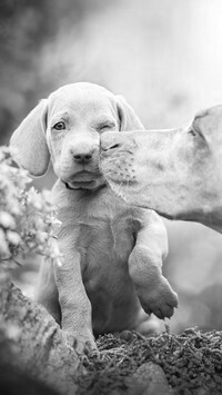 Edytor tapety: Wyżeł opiekuje się swoim szczeniakiem